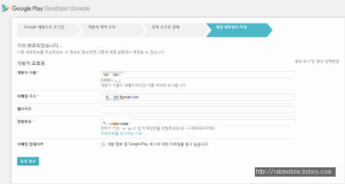 그리고 등록 완료 버튼을 누르면 구글 개발자 등록 완료!!!!