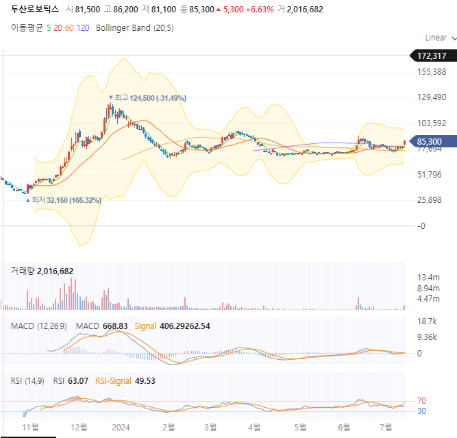 - 최근에는 두산로보틱스의 장기적인 성장 가능성을 고려하여 보유율을 증가시키는 경향을 보였습니다. 이는 장기 투자자들이 지속적으로 매수하고 있다는 긍정적인 신호로 해석될 수 있습니다.