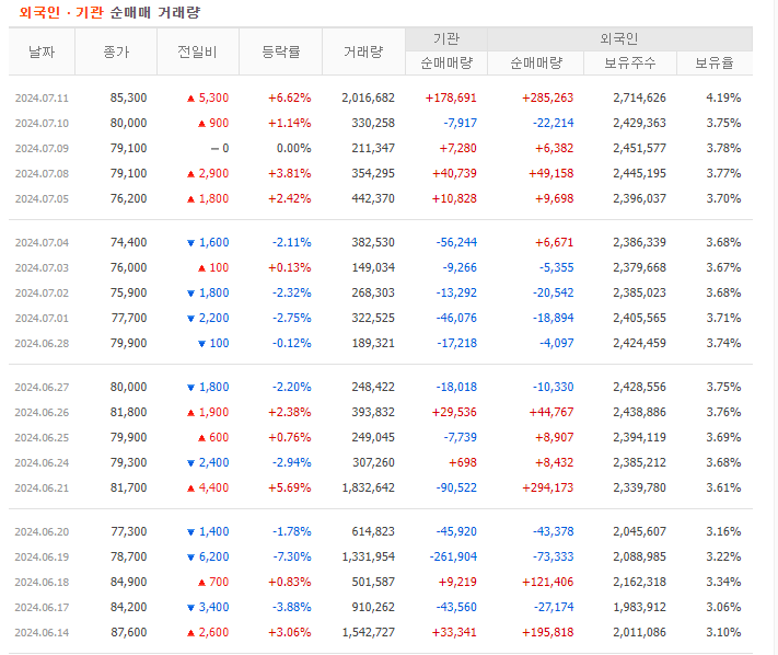 - 기관들은 단기적인 변동성을 이용하여 매수와 매도를 반복하며 수익을 추구하는 전략을 채택하고 있습니다. 뉴스나 이벤트에 따라 투자 전략을 조정하는 경향이 있습니다.