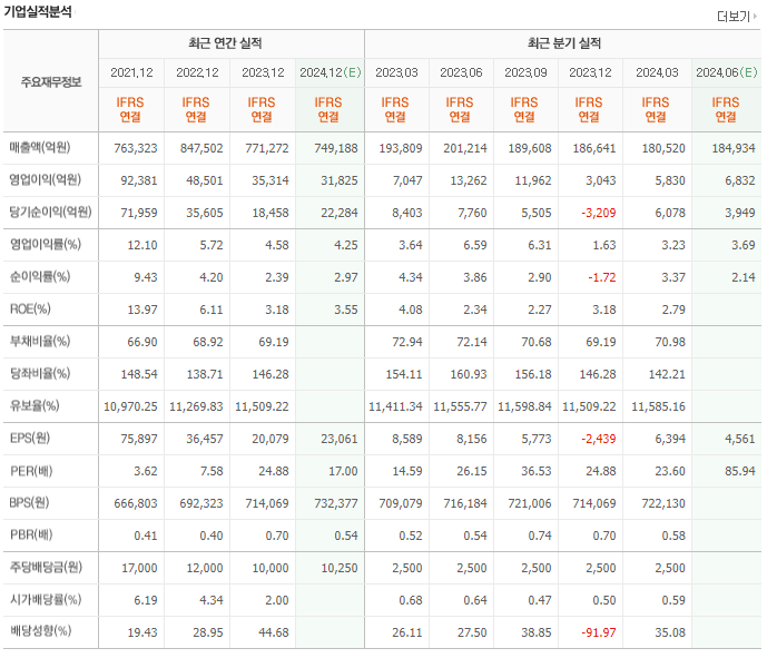 - 현대제철 (004020): 매출액 59,478억원, 영업이익 558억원