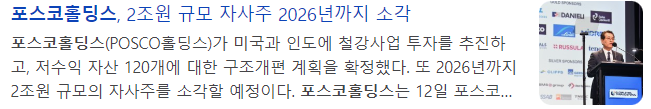 - 포스코, 자사주 2조원 소각 계획 발표 (2024.07.12)