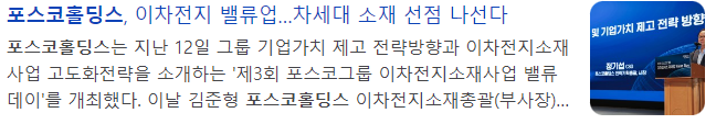 - 포스코, 이차전지 소재 사업 확대 (2024.07.13)