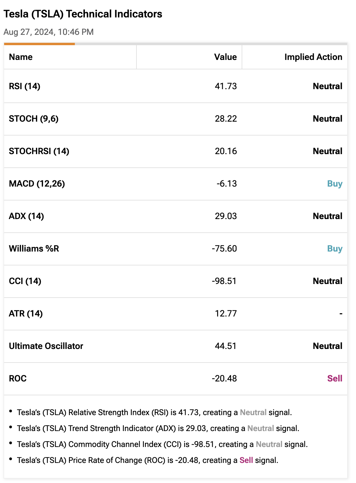 Tesla’s (TSLA) Moving Averages Convergence Divergence (MACD) indicator is -6.13, suggesting Tesla is a Buy.