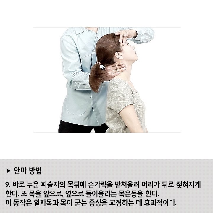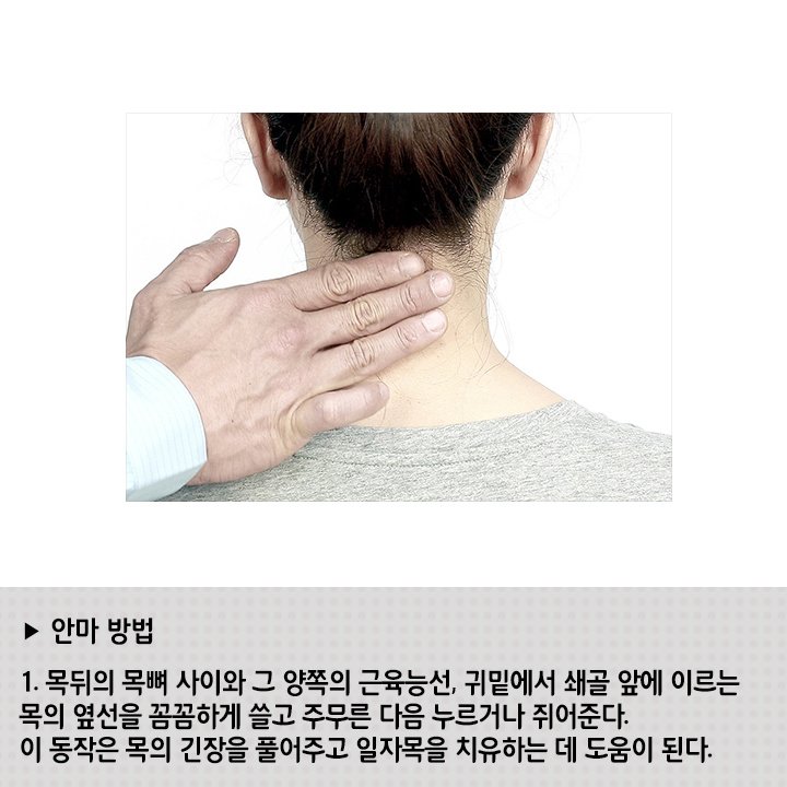 이 동작은 목의 긴장을 풀어주고 일자목을 치유하는 데 도움이 된다