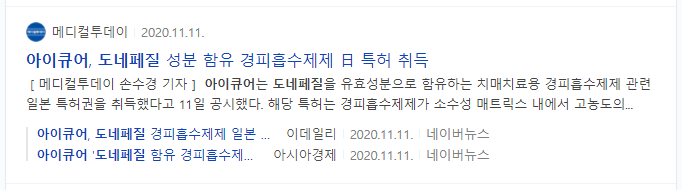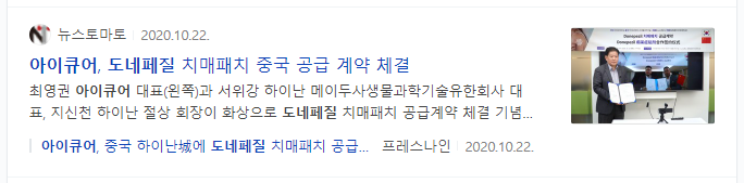 - 도네페질’ 치매 패치제의 국내 임상 3상 결과 발표 임박