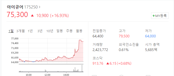 이미 충분히 오른 아이큐어의 주식이 더 오를지 아닐지 귀추가 주목되고 있습니다.