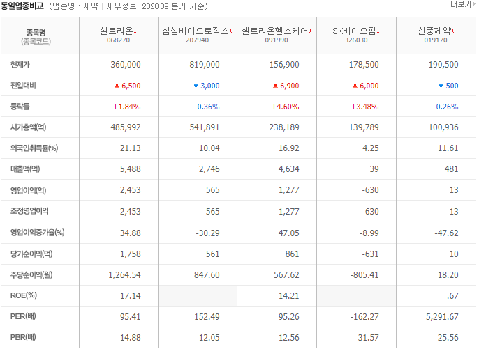 - PER : 95.41배, EPS : 3,773원 PBR : 14.88배, BPS : 24,191원