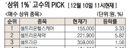 상위 1% 고수의 PICK에서도 볼 수 있듯이 셀트리온의 인기는 최고치를 달리고 있습니다.