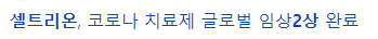 임상 2상 모집 및 치료제 투여 완료,중간 경과는 12월 말 확인 가능,10여개국에서 글로벌 3상 준비 각종 뉴스로 인하여