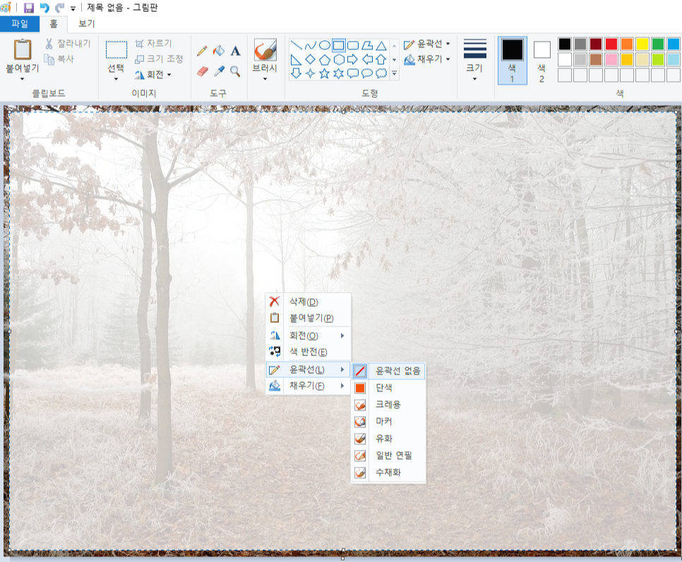 5.마우스 오른쪽 클릭 후 윤곽선 -> 윤곽선 없음 선택