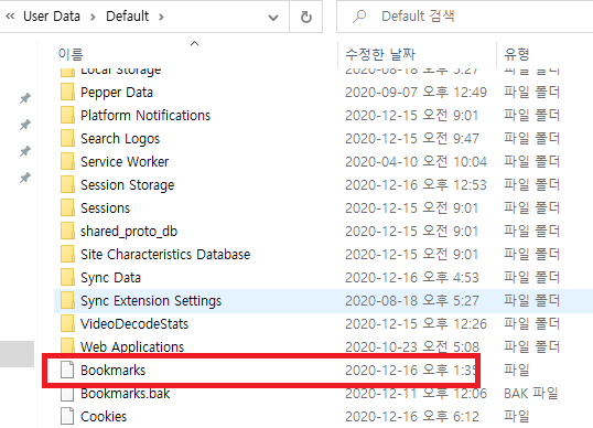 Bookmarks 파일 밑에 백업파일도 같이 존재합니다.