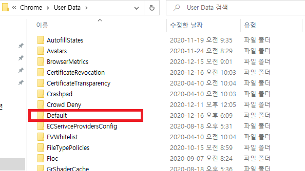 C:\Users\컴퓨터이름\AppData\Local\Google\Chrome\User Data\Default