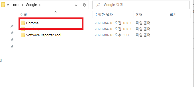 Chrome 폴더로 들어갑니다.