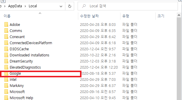 Google폴더로 들어갑니다.