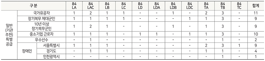 84m2 총 567 가구 : 가점제 100% (15% 생애최초 특별공급 배정)