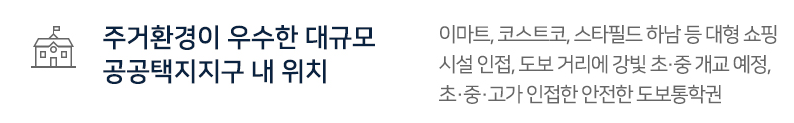 - 쇼핑 : 이마트, 코스트코, 스타필드 하남 등 대형 쇼핑시설 인접