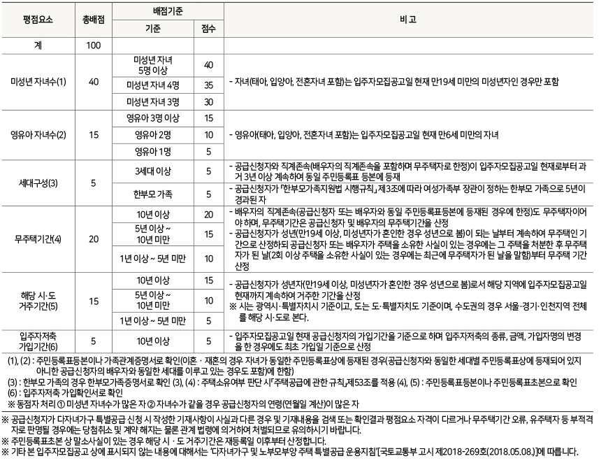 -다자녀 특별공급 배점기준표