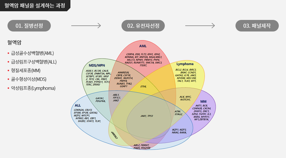 *NGS : 인간의 게놈 DNA를 가장 빠르게 분석 할수 있는 최신 분석기술. 게놈 DNA를 잘게 잘라서 얻어진 DNA 조각을 한번에 대량의 염기서열 데이터를 생산하고 이를 알고리즘을 이용하여 분석하여 돌연변이 유무등을 검사하는 방법