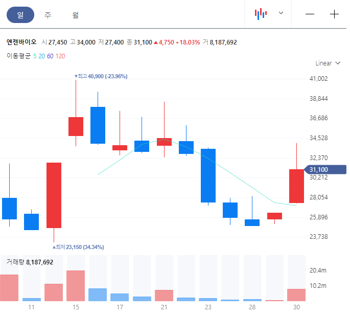 - 52주 최고가 : 40,900원, 52주 최저가 : 23,150원