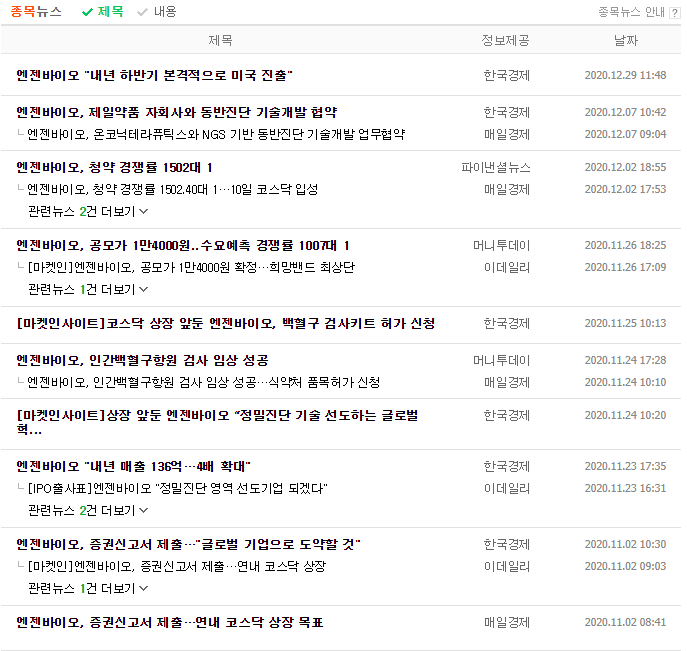 ● 엔젠바이오 실적