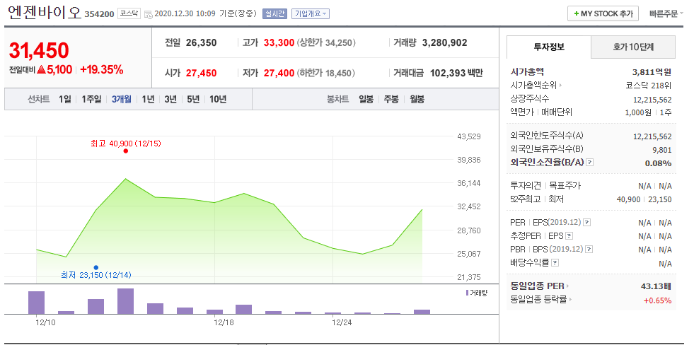 ● 엔젠바이오 주가