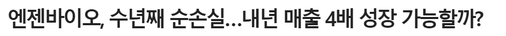 - 엔젠바이오의 실적은 수년째 순손실중