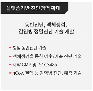 - 상용화된 정밀진단 제품을 활용해 국내외 제약사들과 함께 동반진단 제품을 개발 및 임상을 진행 중