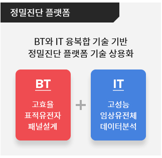 - 질병과 관련된 유전자만 정확히 추출하는 바이오 기술에 복잡하고 방대한 정보를 분석하는 정보 기술을 더함