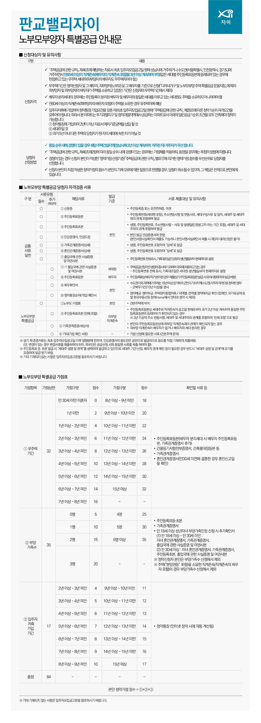 ● 판교밸리자이 노부모부양자 특별공급 안내문