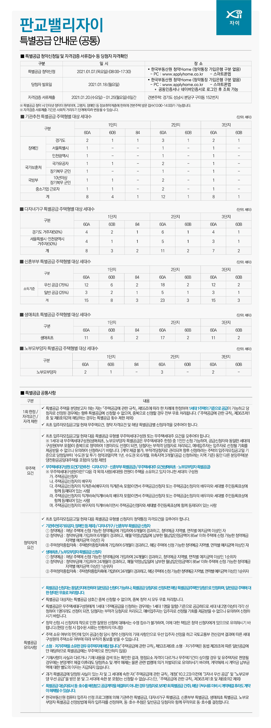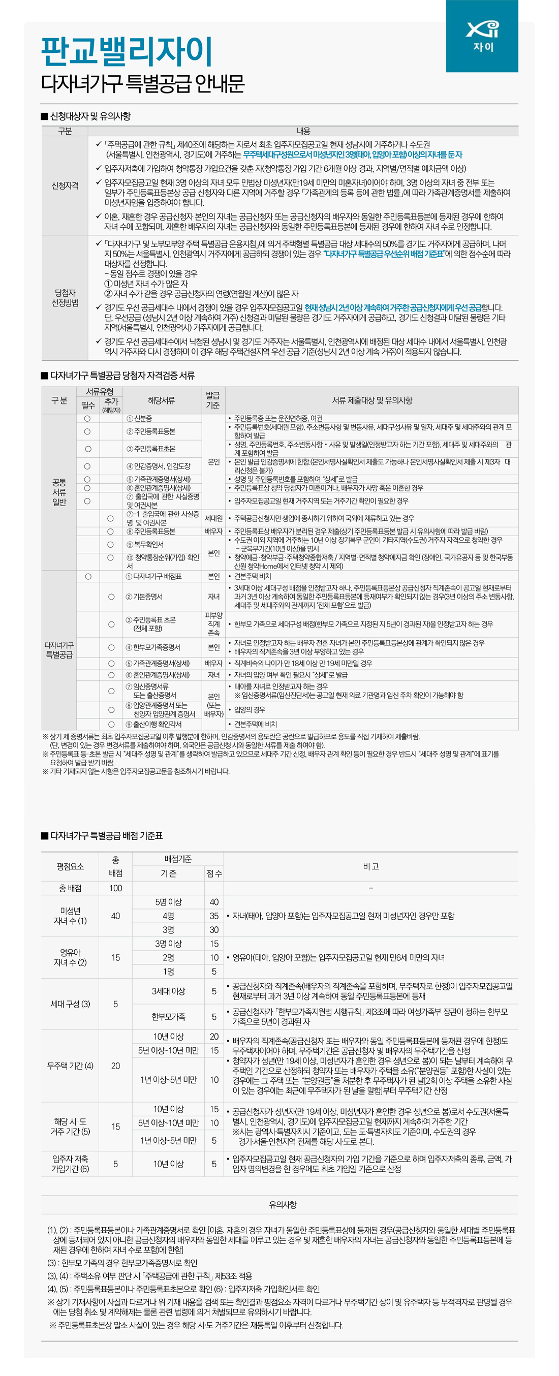 ● 판교밸리자이 다자녀가구 특별공급 안내문