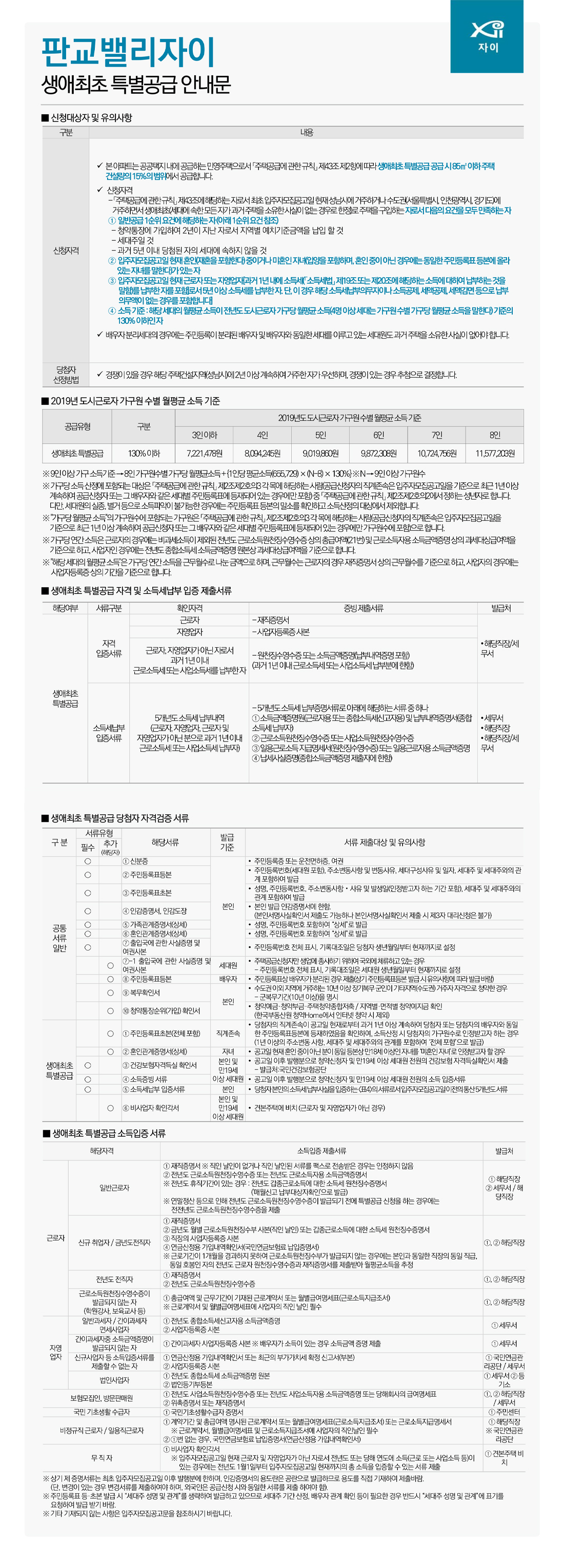 ● 판교밸리자이 생애최초 특별공급 안내문