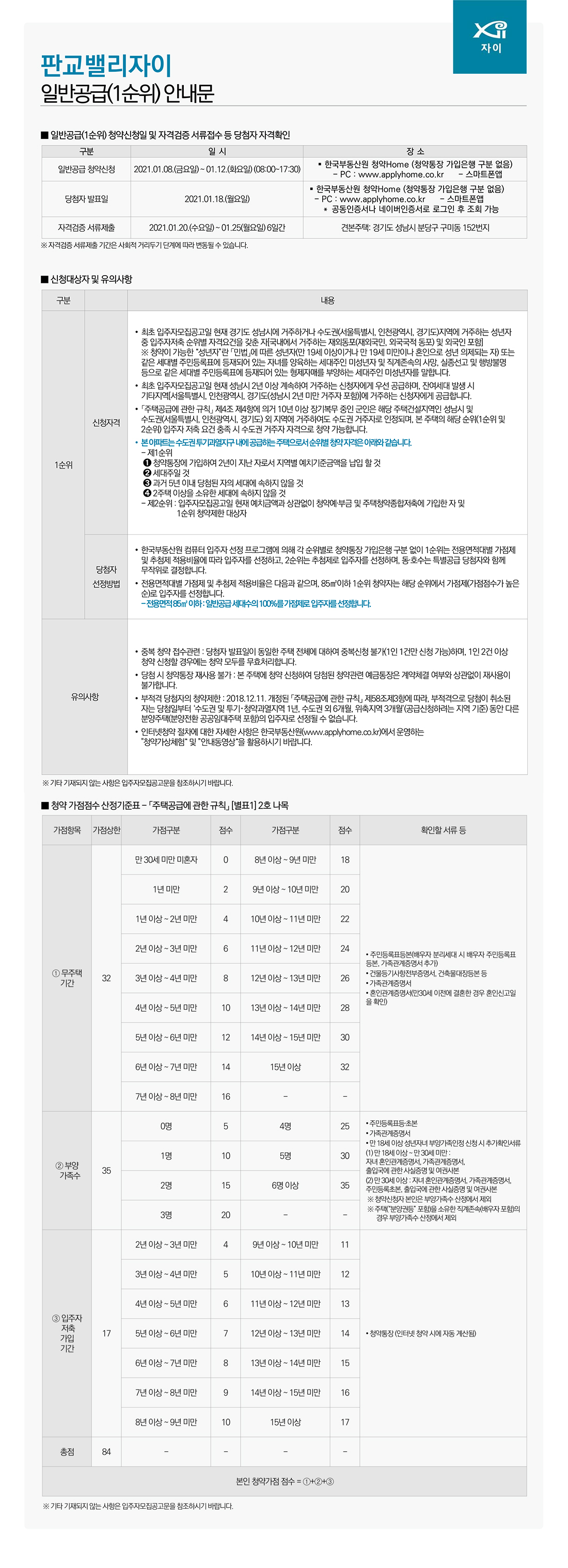 ● 판교밸리자이 일반공급(1순위) 안내문