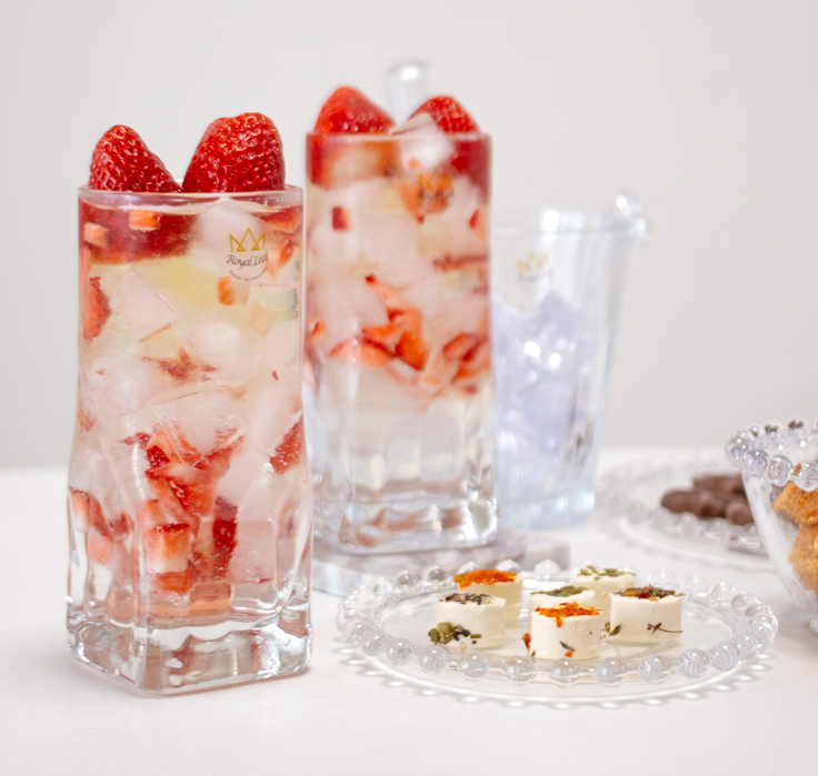 1. 하이볼 잔에 얼음큐브를 넣어줍니다.
