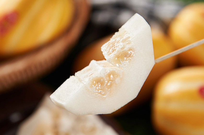 참외를 얇게 썰어 고춧가루, 마늘, 생강, 새우젓 등을 이용해 김치처럼 발효시켜 먹을 수 있어요.