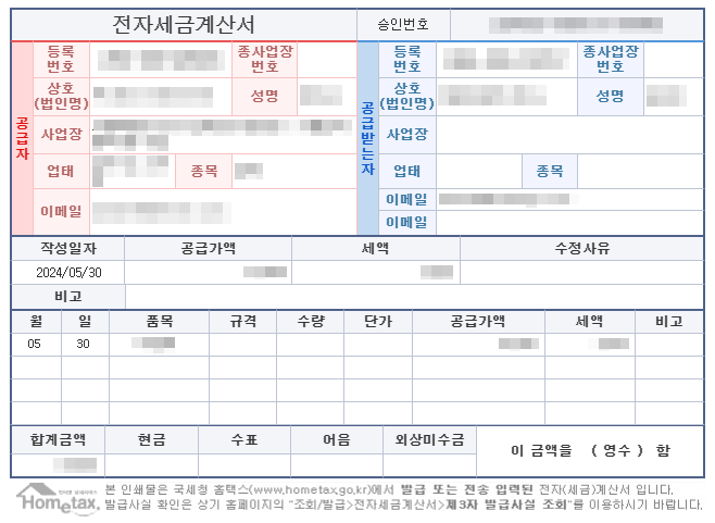 - 거래 내용 (공급가액, 세액, 공급일자 등)이 정확하게 기재되어야 합니다.