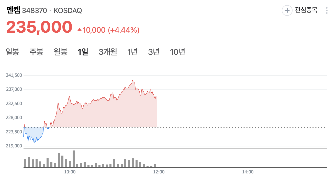 - 지원 및 저항선: 엔켐 주가는 211,000원에서 241,000원 사이에서 거래되고 있으며, 이 범위가 단기적인 지원 및 저항선 역할을 하고 있습니다.