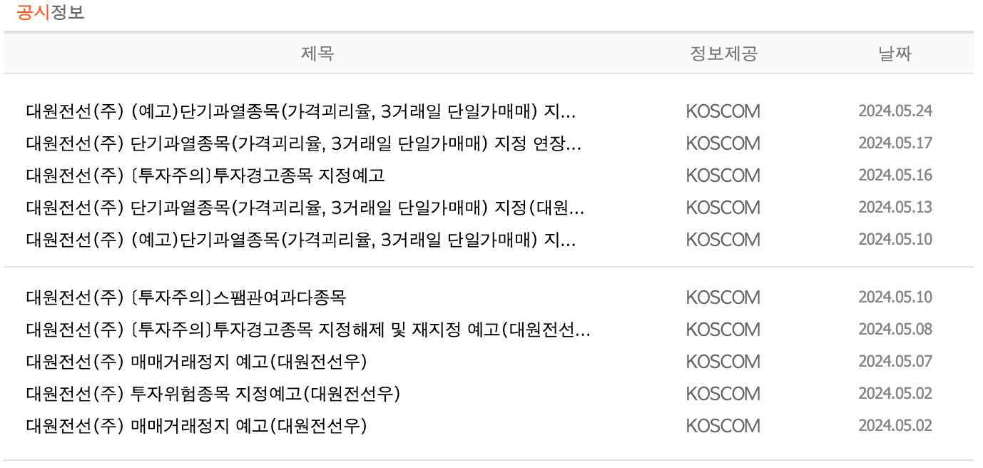 - 장기 전망: 주요 기술적 지표들은 주가의 추가 상승 가능성을 시사하고 있으며, 이는 투자자들 사이에서 긍정적인 신호로 해석됩니다. 장기적으로도 대원전선은 긍정적인 성장세를 유지할 가능성이 높습니다.
