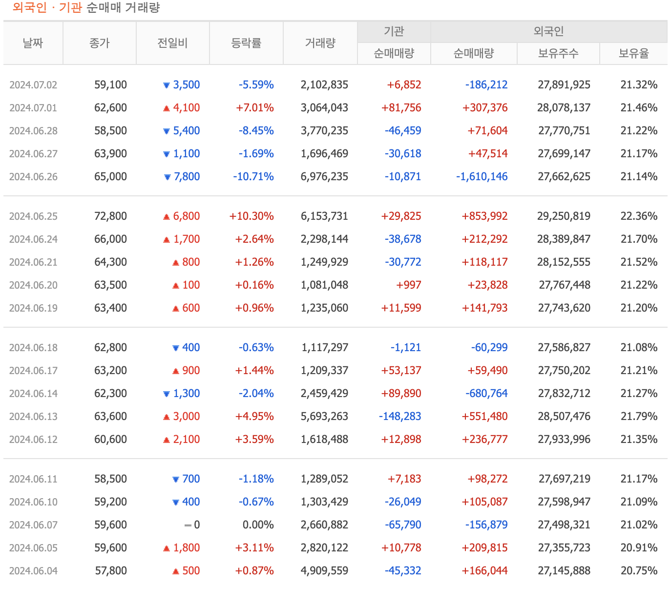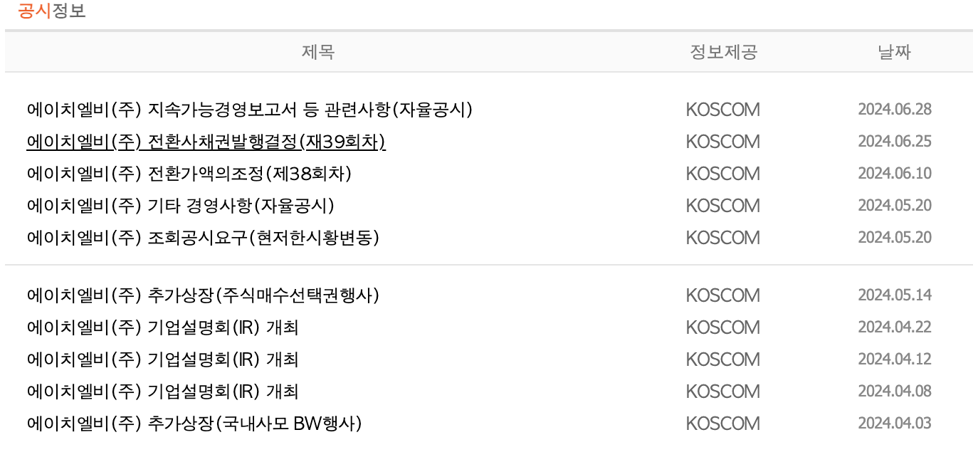 - 최고가와 최저가: HLB의 최고가는 2024년 3월 129,000원이었으며, 최저가는 2023년 10월 27,550원이었습니다. 주요 임상 결과와 FDA 승인 소식에 따라 큰 변동을 보였습니다.