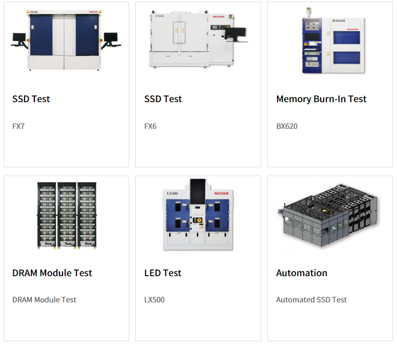 SSD와 DRAM Module Test 자동화 장비와 LED Aging 장비 등 새로운 영역으로 제품군을 다각화하고 있습니다.