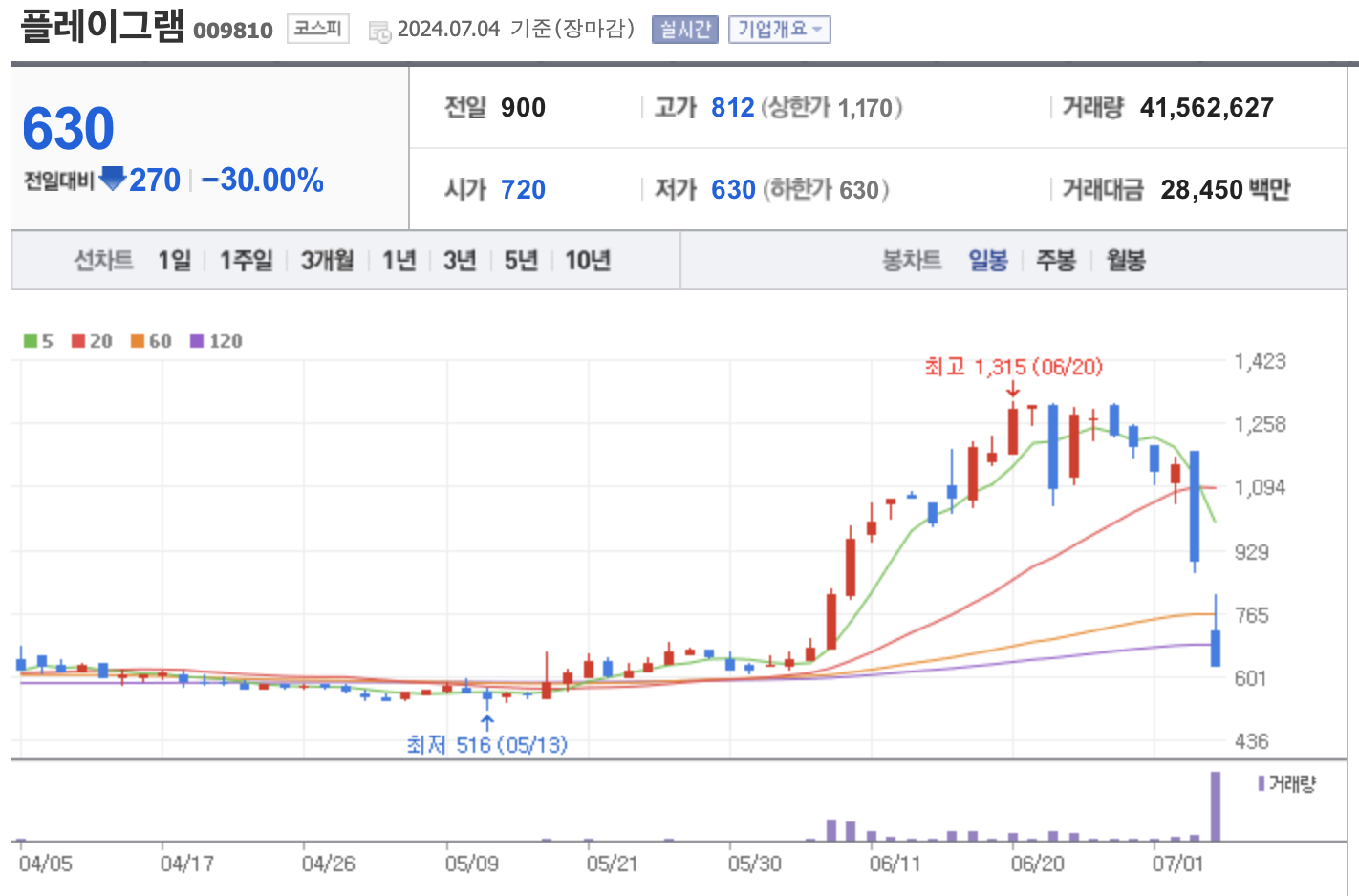 플레이그램 주가는 변동성이 크고 실적이 부진한 상황입니다. 콘텐츠 사업 확장을 목표로 하고 있으나, 경영진 교체와 자본 확충만으로는 부족할 수 있습니다. 지속적인 적자와 불안정한 재무 상태는 투자자들에게 큰 리스크로 작용하며, 향후 실질적인 성과가 나타나지 않으면 추가적인 주가 하락이 예상됩니다.