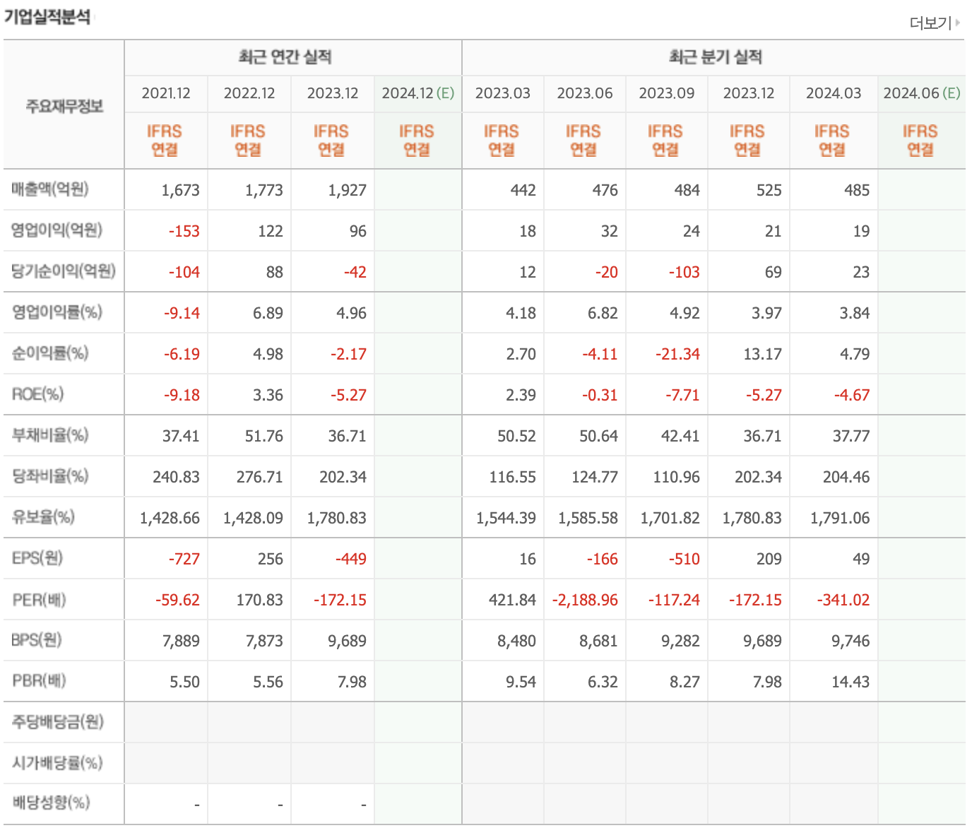 ◎실적 분석 (연간 분석) 및 요약