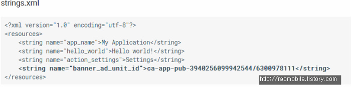 아까 애드몹 사이트에서 발급받은 광고 단위ID를 설정해둡니다.