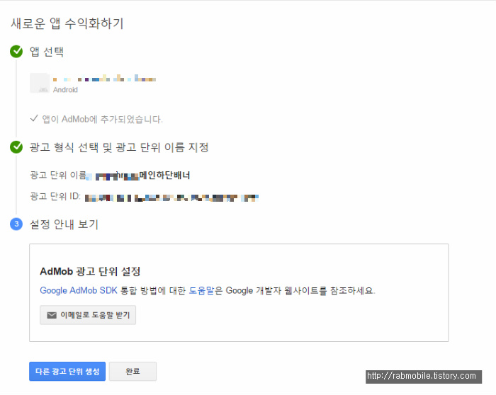 3.자신의 앱을 등록하면 광과단위ID를 획득합니다.
