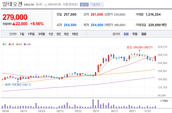- 투자자 관심: 외국인 및 기관 투자자들의 매수세가 지속되고 있어 알테오젠의 성장 잠재력에 대한 신뢰가 높습니다.