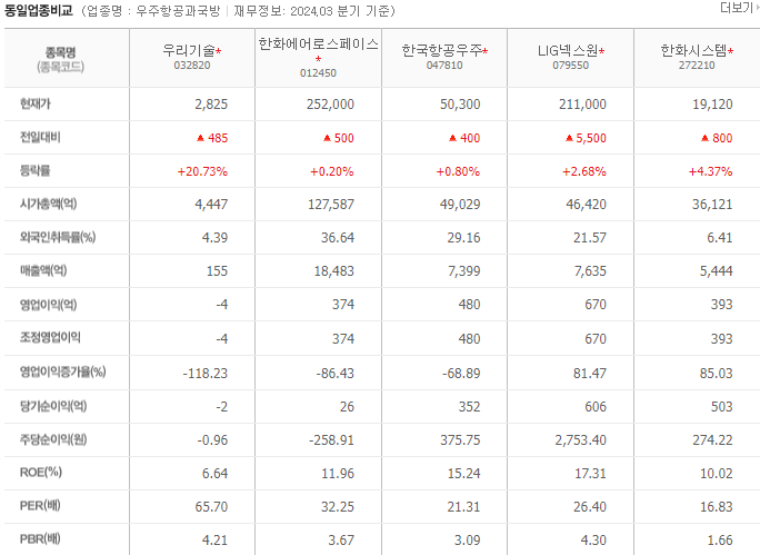 - 한국항공우주: 시가총액 49,029억 원, 외국인 비율 29.16%