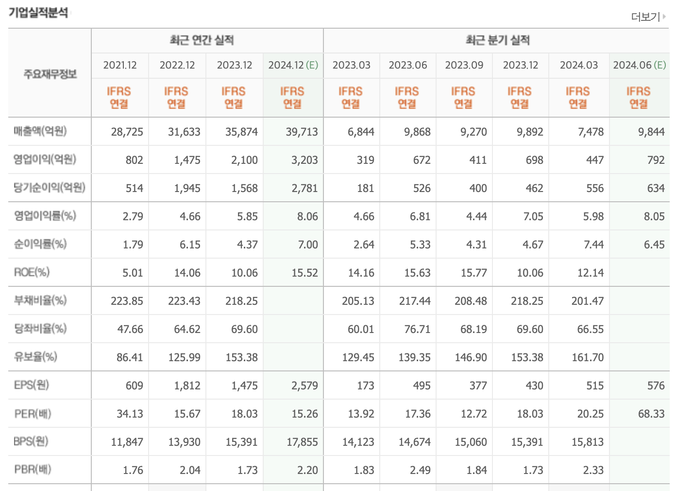 - 영업이익도 지속적으로 증가하고 있습니다. 영업이익률 개선과 효율적인 비용 관리 덕분에 영업이익이 매년 큰 폭으로 성장하고 있습니다. 2024년에도 영업이익의 큰 성장이 기대됩니다.